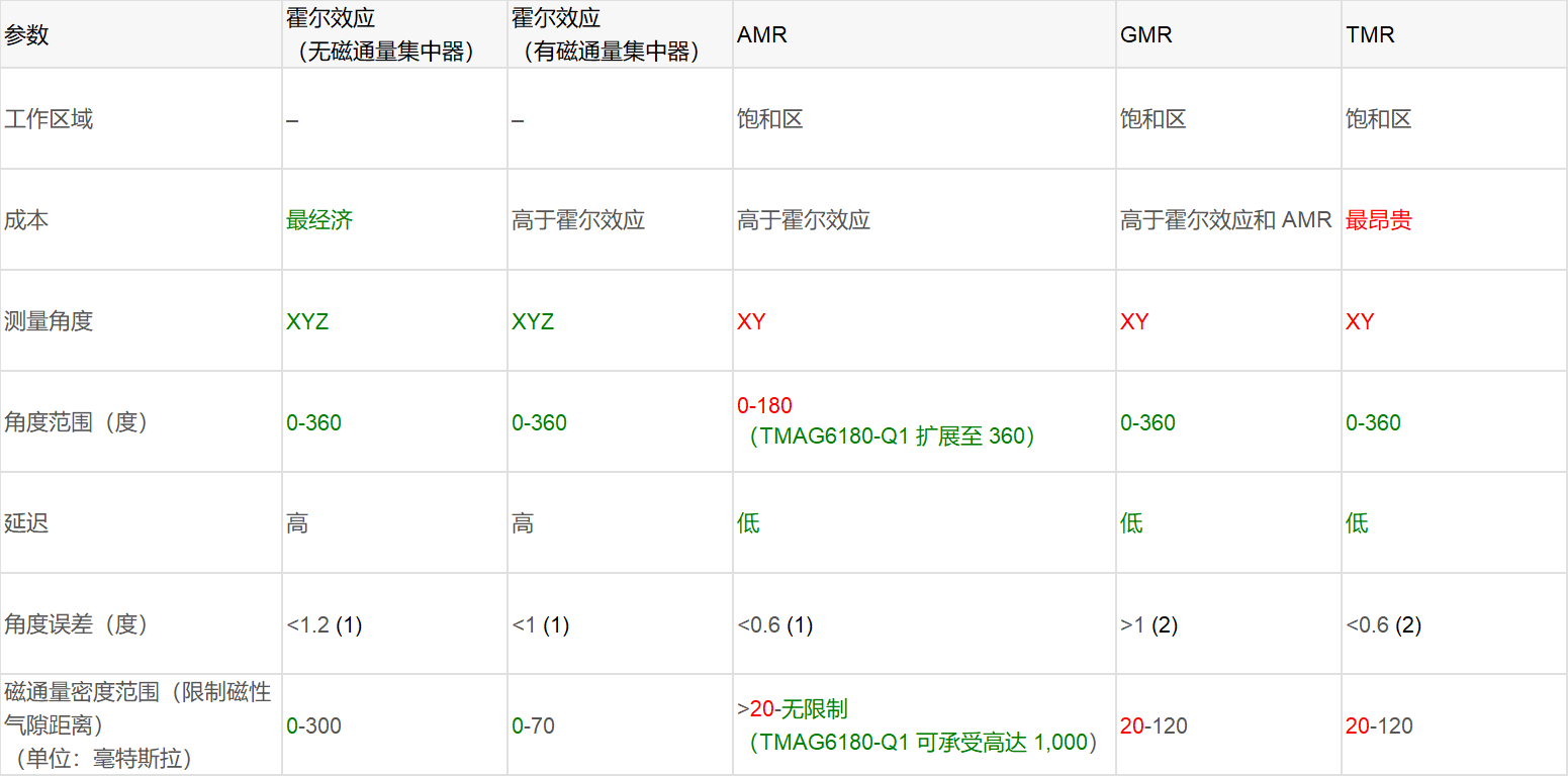 表 1:磁傳感器技術(shù)比較:主要特性和規(guī)格